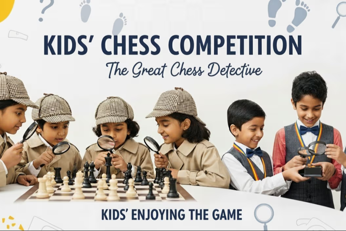 ♞ The Great Chess Detectives Competition ♞Step into a world of mystery and chess!In this 45-minute fun-filled competition, kids become detectives, solving puzzles and uncovering hidden clues on the chessboard. Every move leads to a new challenge—crack the case by playing chess in a whole new style!🕵️♂️ Highlights of the Adventure:🧩 Solve clues through chess challenges.🎲 Fun puzzles that mix chess + logic + imagination.📚 Learn Math, English, calculation, and critical thinking.⏳ 45 minutes of interactive adventure, perfect for young learners.🏅 Each child receives a Certificate of Completion as a proud Chess Detective!❤️ Best For: Kids who want to learn chess while building life skills in a fun, story-based way.🧠 Kids Should Know:How all the chess pieces move.The names of the six types of chess pieces are the King, Queen, Rook, Bishop, Knight, and Pawn.🎖️ VIP KID Entry Ticket Benefits:i) Get one Assured Medal delivered to your address.ii) Get one Printed Congratulations Letter delivered with your Medal.iii) In case of any emergency from your end, you can reschedule the event.iv) Kids will be fully joyful and happy after receiving the Medal for The Great Chess Detectives Event.🧩 Skills Learned:✔ Chess basics & strategy✔ Math & calculation (piece values, counting moves)✔ English & riddles✔ Problem-solving & teamwork